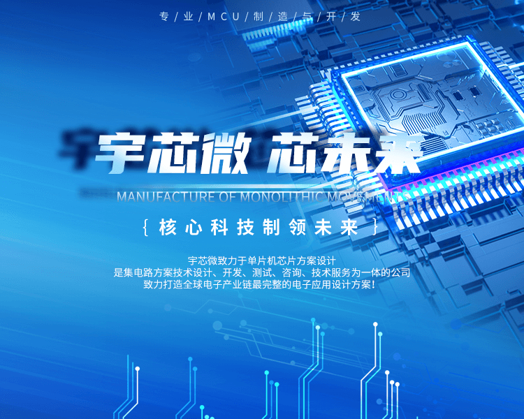 溫州宇芯微是國內一家以32位MCU/8位單片機方案開發設計及生產制造為一體的行內知名企業。擁有多達 100 種各領域的單片機/主控芯片/MCU(以下統稱為“單片機”)的方案開發, 可為您的產品開發降低成本最高可達 30%,在產品研發領域中,我們所把控的資源將是您選擇的理由!公司的單片機通過了SGS 認證,在產品的安全性有保障,我們可以承諾產品的優良率高于99.7%,如超過經過技術檢測屬實,我們會補足訂單的芯片數量,并承擔產品運輸的所有費用。